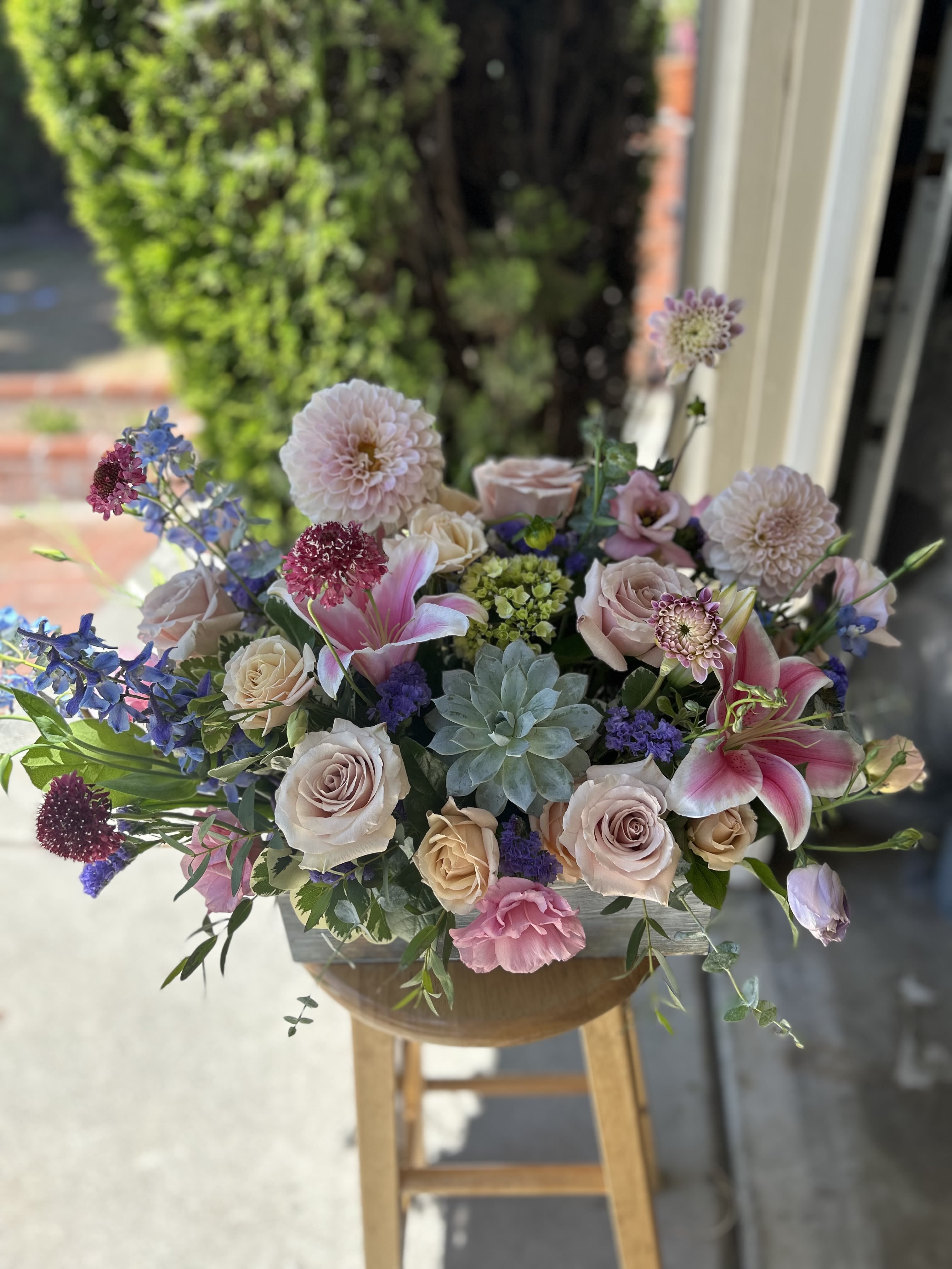 We offer custom flower delivery in Dana Point, using fresh, seasonal blooms arranged with care. Whether you're sending flowers for a birthday, Valentine's Day, or just because, we'll design something one of a kind to match the moment. Just tell us the colors, style, or feeling you want to share, and we'll bring your vision to life. You can also add a handwritten card or small gift to make it even more personal. Roses, tulips, ranunculus, and other seasonal favorites may vary, but we always keep the overall look and value of your arrangement just right.